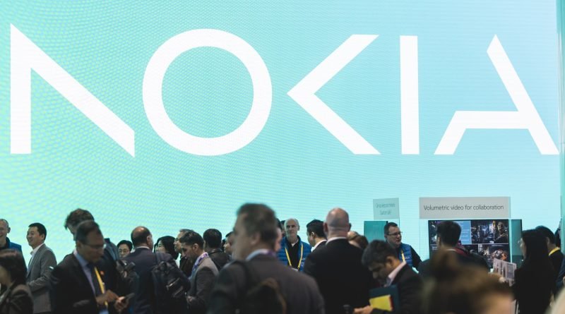 Read MoreBARCELONA, SPAIN – FEBRUARY 26: A logo sits illuminated at the Nokia booth in the Mobile World Congress 2024 on