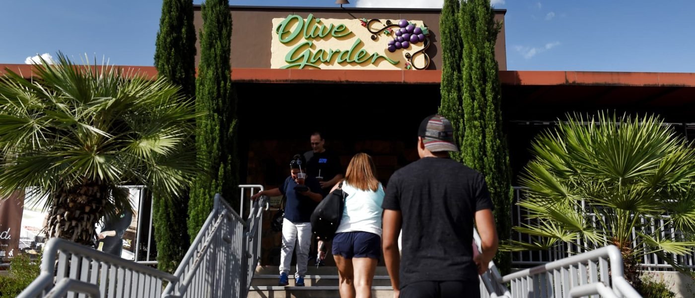 Customers arrive at an Olive Garden location in San Antonio, Texas.