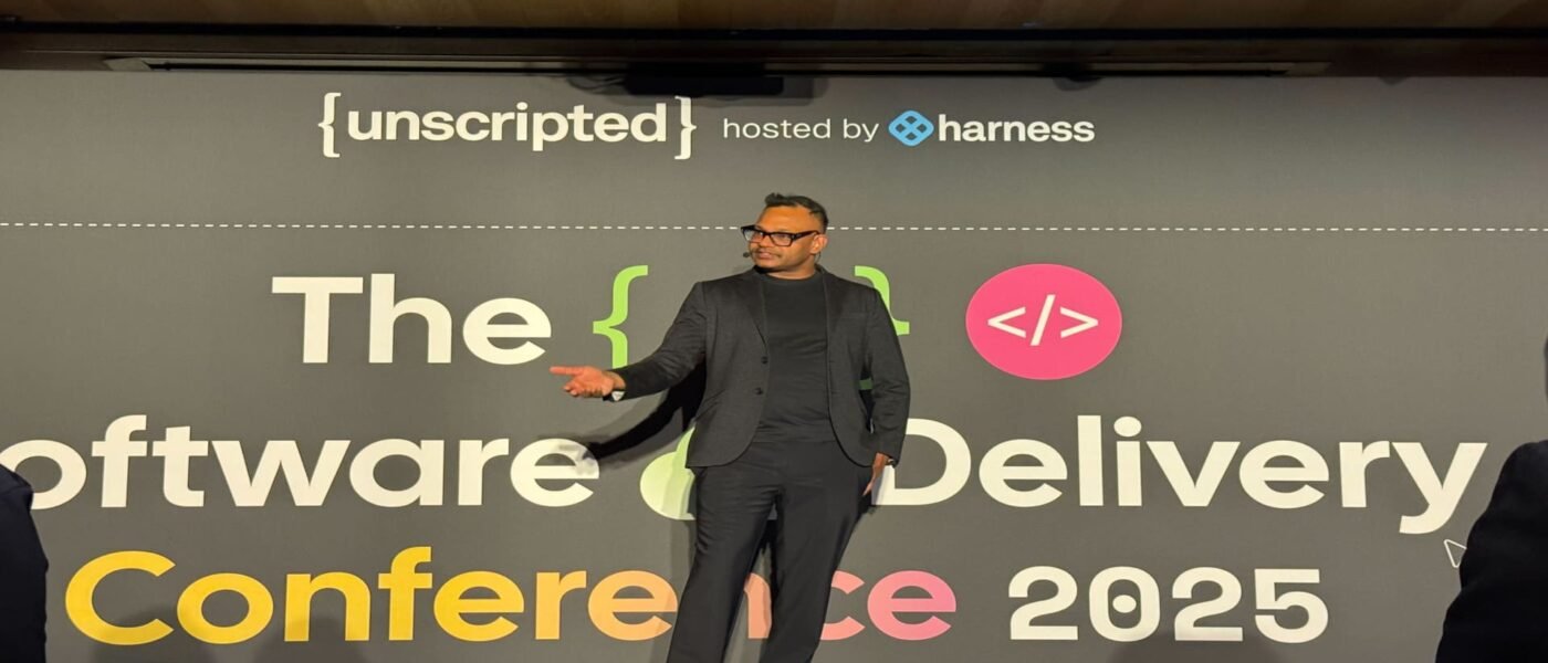 Jyoti Bansal, co-founder and CEO of Harness, speaks at the company’s Unscripted conference in London on Sept. 25, 2025.