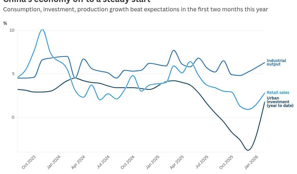 Holiday spending, export demand drive China’s early year economic momentum as Iran war headwinds loom