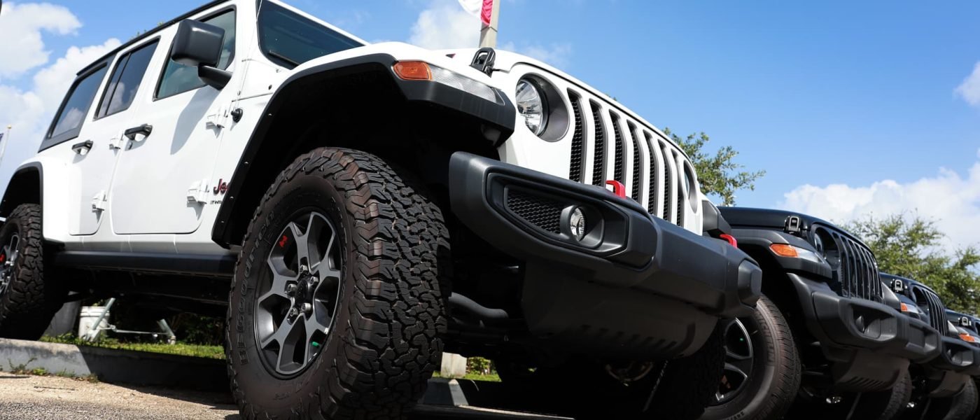 New Jeep vehicles sit on a Dodge Chrysler-Jeep Ram dealership’s lot on October 03, 2023 in Miami, Florida.