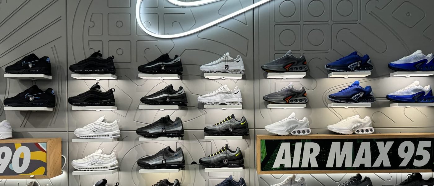 Nike shoes and logo are seen at a store in Nice, France on May 28, 2024.
