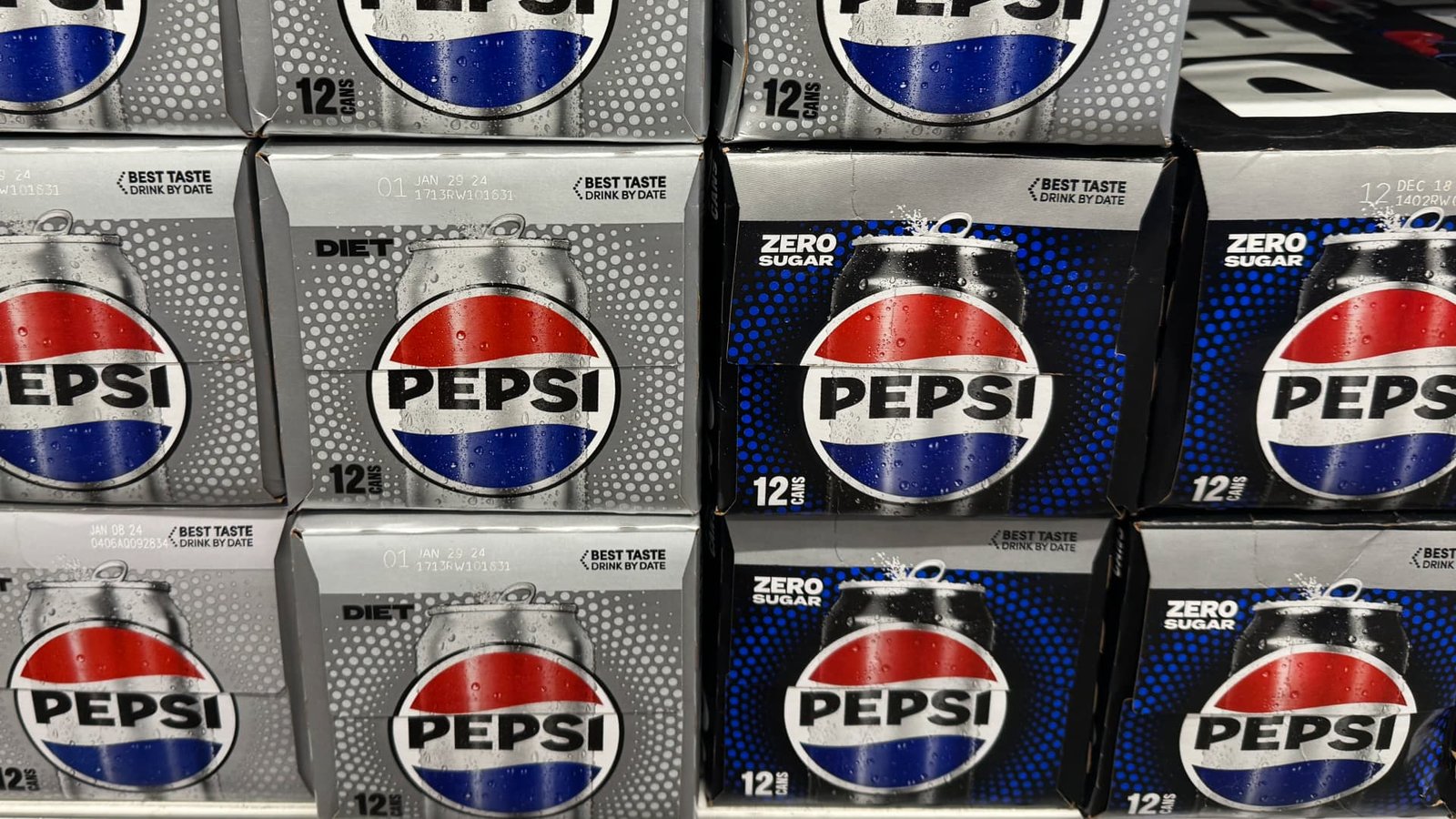 Pepsi bottles with new and previous logos are seen at the grocery store in Las Vegas, United States on November 17, 2023.