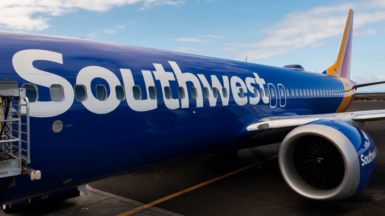 A Southwest Airlines jet is parked Ellison Onizuka Kona International Airport at Kehole awaiting passengers on January 20, 2024 in Kailua-Kona, Hawaii.