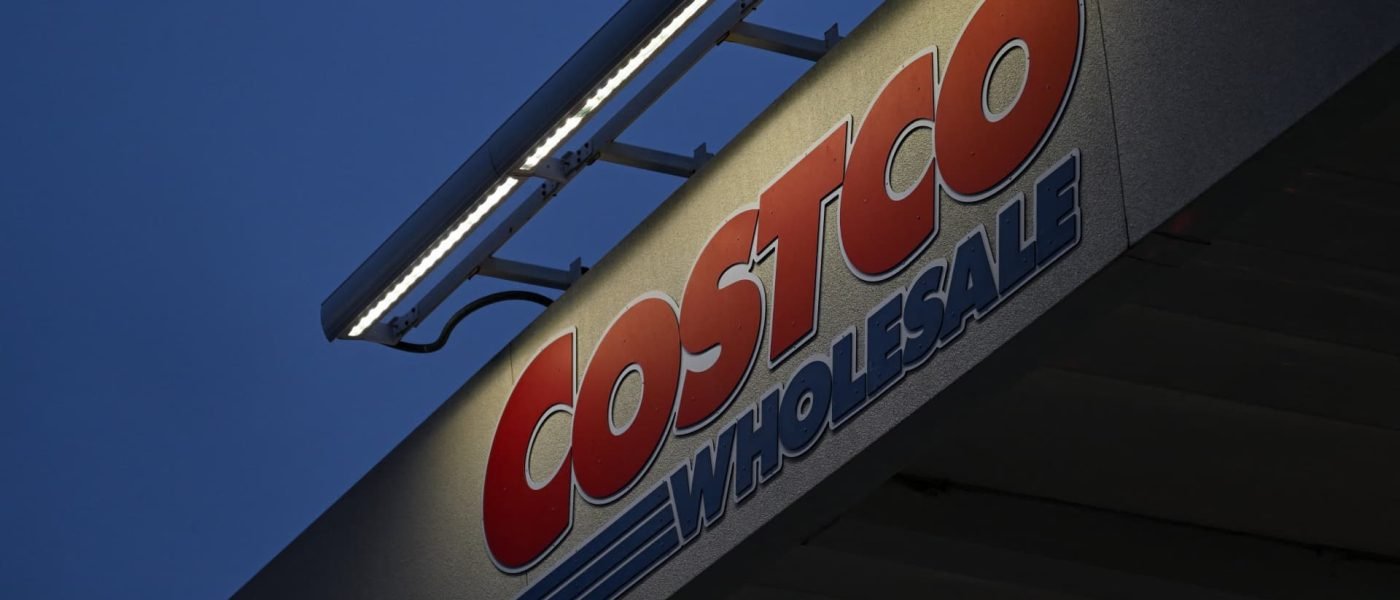 The Costco Wholesale Corp. logo is displayed above a gas station in Hawthorne, California, on June 12, 2024.