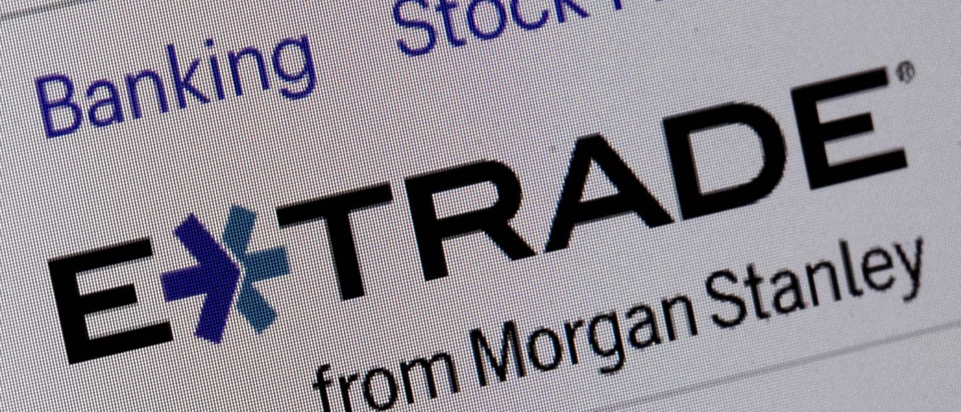 In this photo illustration, the logo for E-Trade, the online trading platform owned by Morgan Stanley, is shown on the company’s website on May 13, 2024 in Chicago, Illinois.